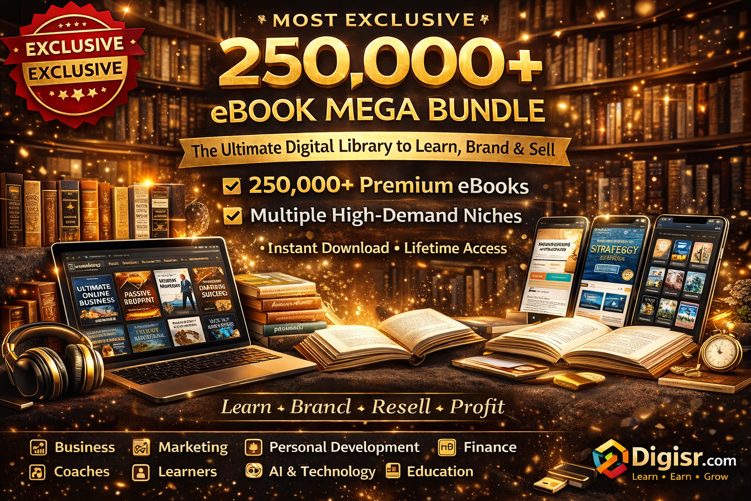 This massive bundle gives you access to 250,000+ professionally written eBooks covering almost every profitable niche imaginable. Whether your goal is learning, reselling, building a digital store, creating bundles, or growing authority, this bundle gives you instant power and unlimited opportunities.